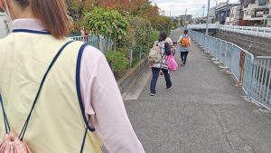避難場所の柳川小学校さんまで、避難訓練しました。